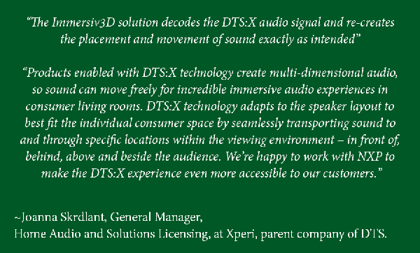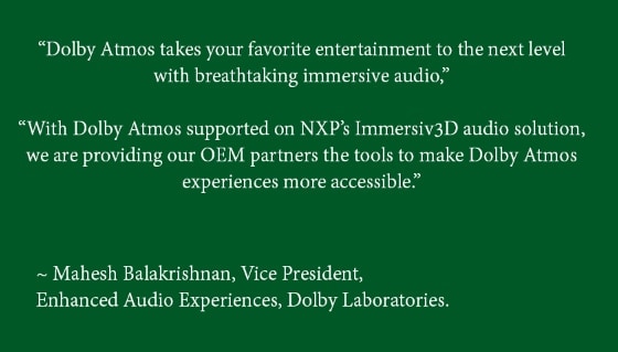 As a result, the combination of NXP’s innovative software and hardware allows customers to dramatically cut development cost, accelerate time-to-market, enable high fidelity audio and capability to add new smart and connected features.