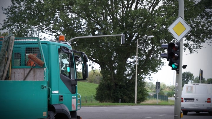 Two sets of Siemens traffic controller lights were fitted with ESCoS (Road Side Units, also from Siemens), which can communicate with FlowRadar (onboard unit) provided by Technolution fitted inside the cabins of the 50 trucks in the trial. The two-way communication from RSU to/from OBU uses the Intelligent Transport System (ITS) G5 standard IEEE 802.11p, specifically for transport.