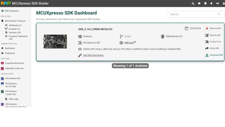 要获得最新的SDK包,请访问在线MCUXpresso SDK builder。