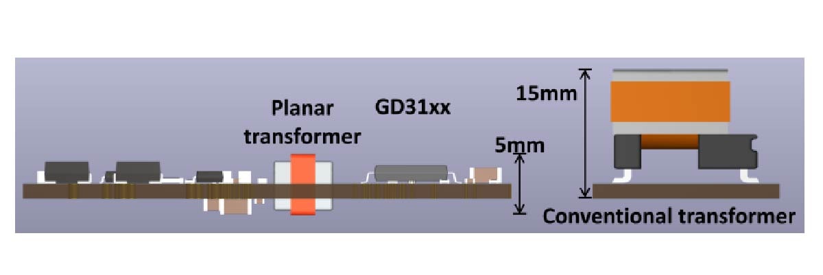 图4——平面变压器和传统变压器的高度比较