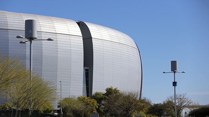 为了使这届超级碗赛事成为史上最畅通的超级碗赛事之一,Verizon竭尽所能,在体育场座位下安装了1400个4G和5G天线,体育场周围部署了460个5G节点,其中66个是5G毫米波节点。体育场外区域安装了90个新的4G节点和180个5G节点,以处理大型比赛之前、期间和之后传入、传出和场馆内的大量实时数据。