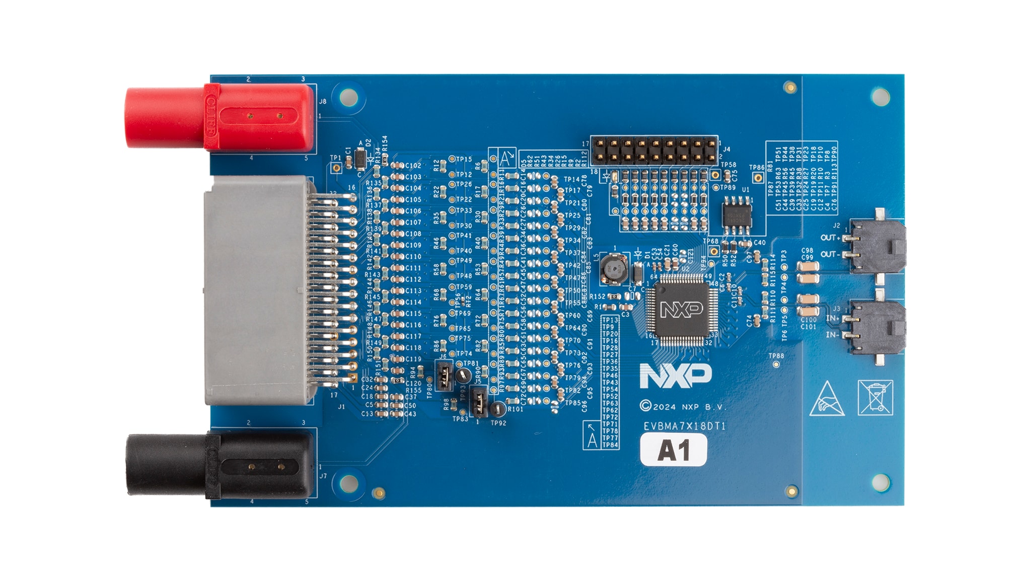 EVBMA7X18是集成电化学阻抗谱(EIS)功能的分布式电芯监测单元(CMU),支持电气传输协议链路(ETPL)通信。非常适合高压电池管理系统(HVBMS)硬件和软件快速原型制作。该板包含一个BMA7418模拟前端(AFE),通过其集成的DFT功能实现EIS测量。BMA7418和BMA7118在引脚和功能方面兼容,使得EVBMA7X18也可用于评估BMA7118。