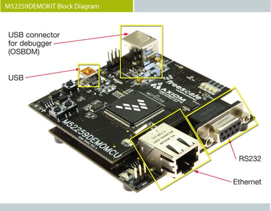 Tower System, ColdFire MCU Module, MCF5225X, Connectivity USB 2.0, FlexCAN, 10/100 Ethernet.