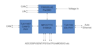 它基于32位Power Architecture® MPC5777C超可靠微控制器和FS65系统基础芯片(SBC)、TJA1100和TJA1145T/FD以太网以及CAN FD PHY收发器,有助于软硬件开发,提供系统性能和安全性。