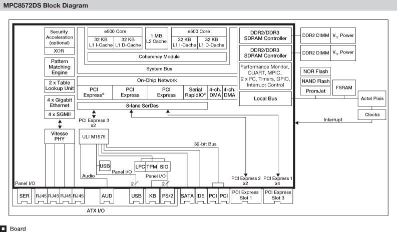 The ATX form-factor NXP® MPC8572E development system (MPC8572DS) is ideal for hardware and software development for embedded applications. It leverages NXP’s highly integrated MPC8572E processor, built on Power Architecture® technology, and leading-edge external components.