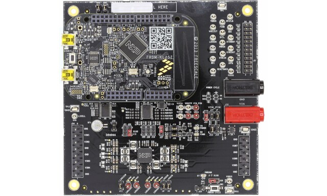 - 置于防静电袋中并经过组装和测试的KITPF8100FRDMEVM,以及预编程的FRDM-KL25Z微控制器板