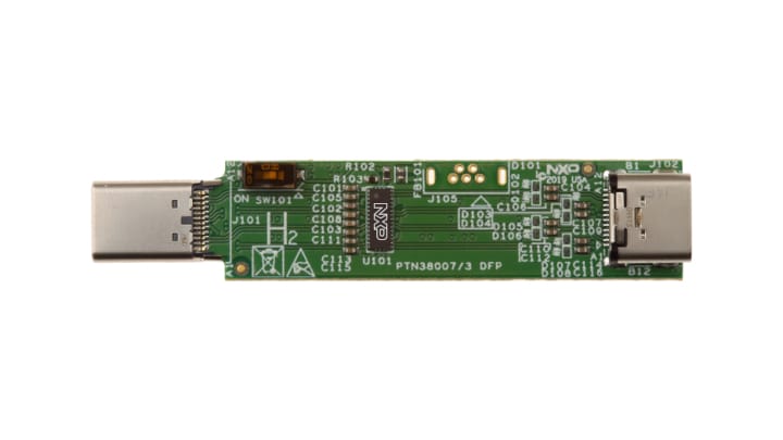 This evaluation board can be use to evaluate PTN38003A redriving USB 3.2 and DisplayPort 1.4 signals over longer channel length, on either motherboard side or on the device side. It optionally can be use to evaluate signal driving capability on an active cable.
