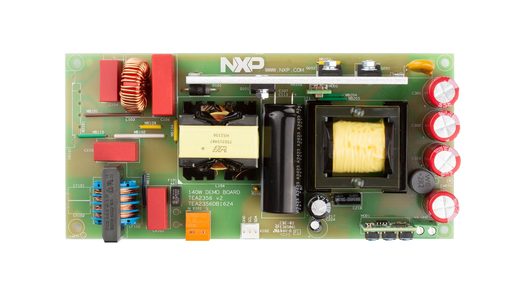 TEA2356DB1624是一个140W PFC+AHB演示板,支持将输出电压配置为5V、9V、15V、20V或28V。该设计集成了TEA2356 PFC+AHB控制器与TEA2392同步整流(SR)控制器,为高性能电源转换提供了一款紧凑且高效的参考解决方案。