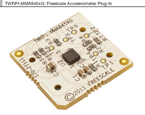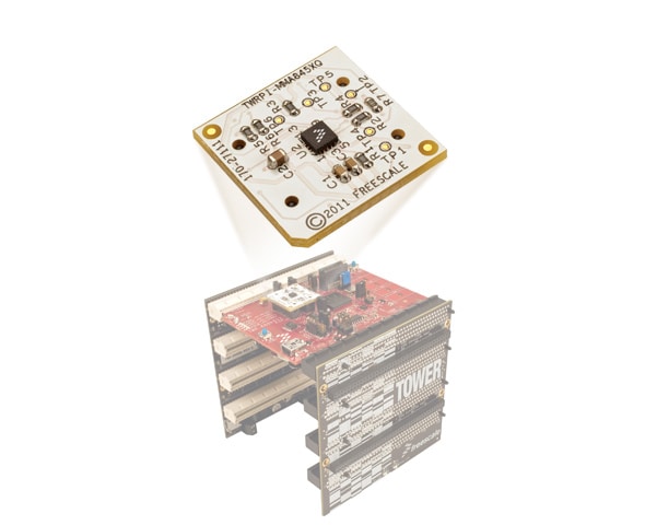 Offered as an attachment for various Tower® System modules, the TWRPI-MMA845XQ accelerometer accelerates your design time. It features the NXP® MMA8451Q 3-axis accelerometer with 14 bits of resolution and brings freefall/motion, pulse, and jolt detection to life in your designs. Simply place the TWRPI-MMA845XQ NXP Accelerometer Plug-In onto a parent controller or peripheral module in the Tower System, and start prototyping quickly and easily.