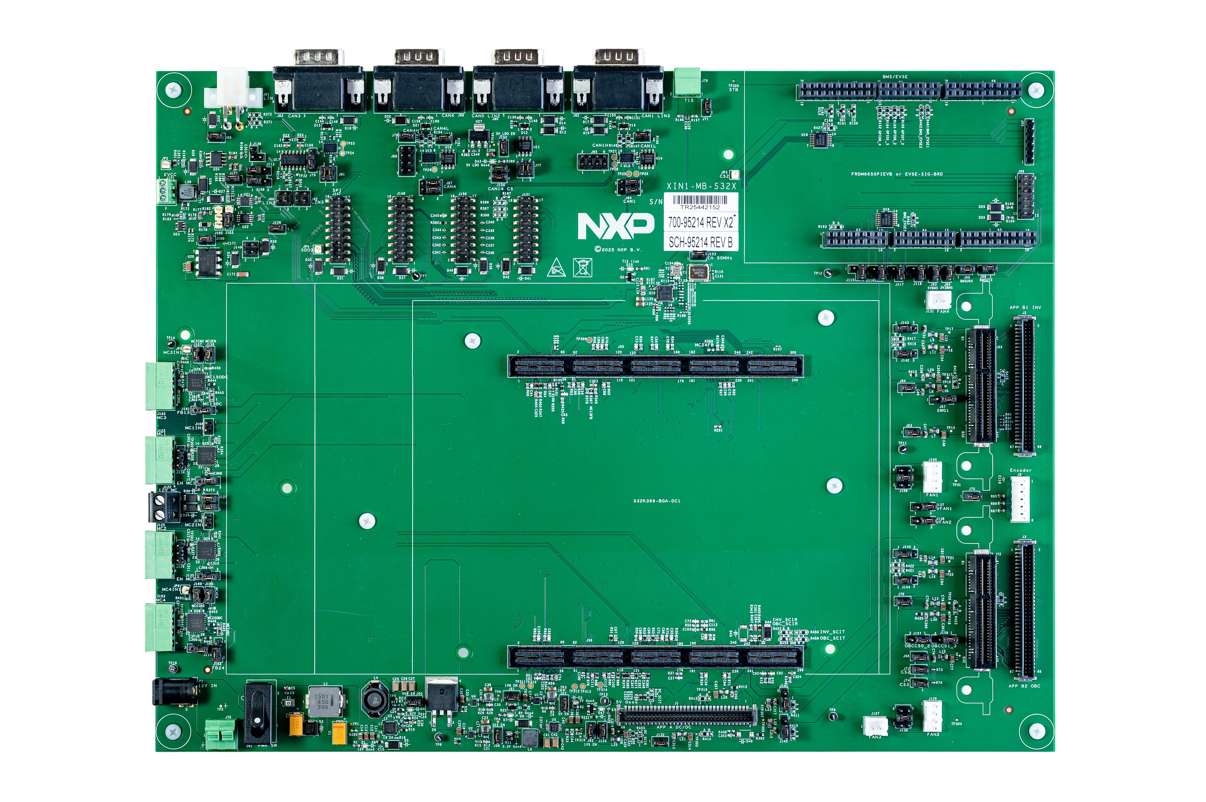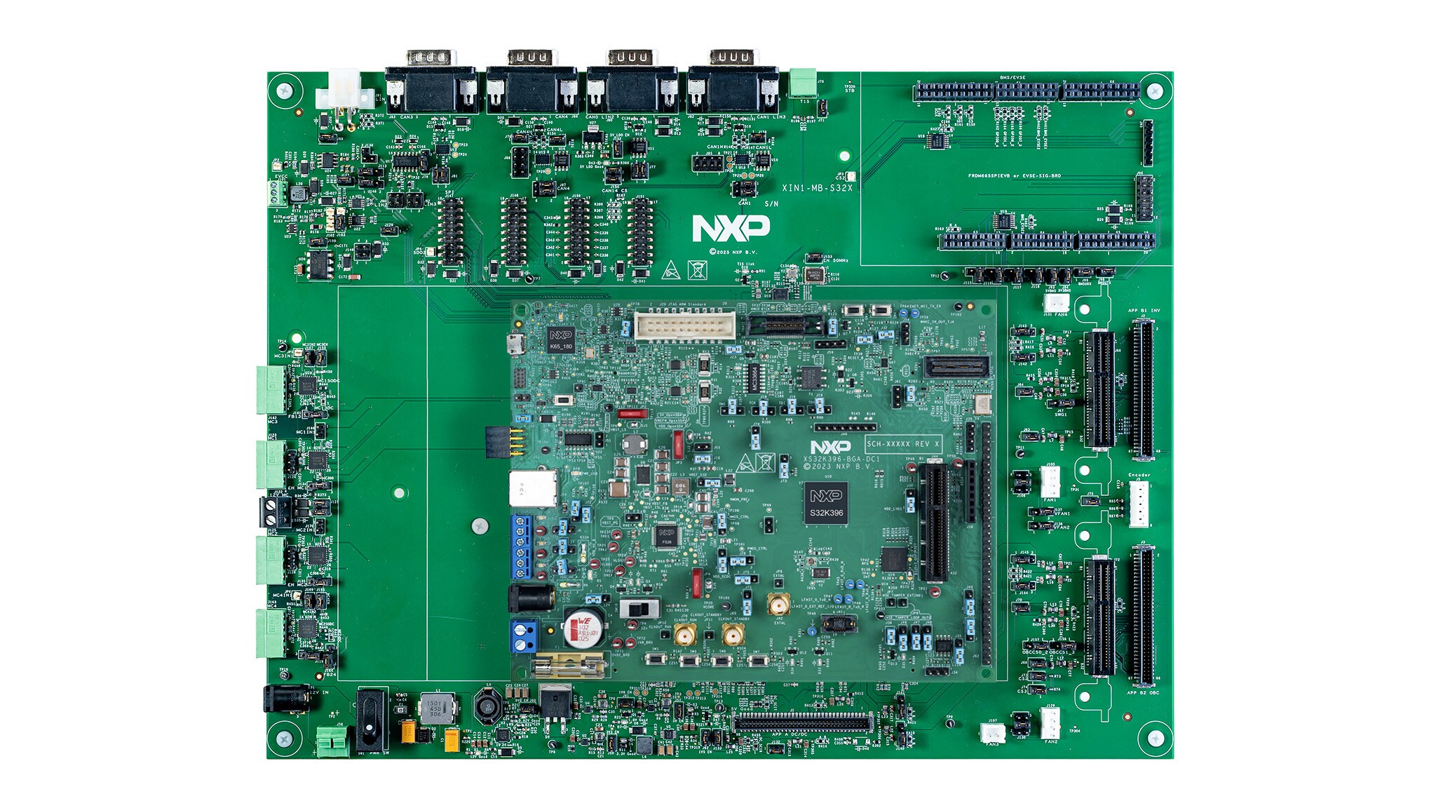 The XIN1-S32X-MB is a versatile main board designed to interface the S32K396 MCU with a wide range of analog actuation and application boards. This modular approach enables fast prototyping and evaluation of multiple X-IN-1 automotive use cases across powertrain, charging and energy-management domains.