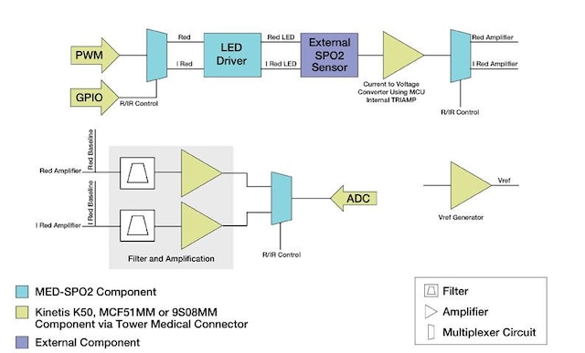 - 需要外部脉搏血氧仪传感器(参阅应用笔记AN4327),不包括在内