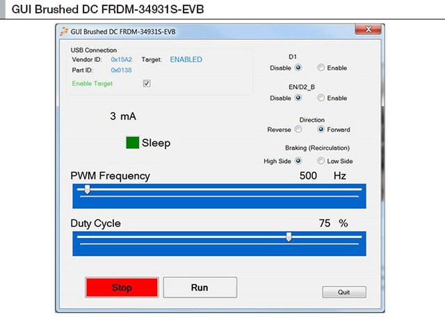 图形用户界面(GUI)有3个版本,分别用于 FRDM-34931S-EVB、FRDM-34931-EVB和FRDM-33931-EVB。GUI结合FRDM-KL25Z,与该电路板协同工作,FRDM-KL25Z通过USB线缆与PC连接。