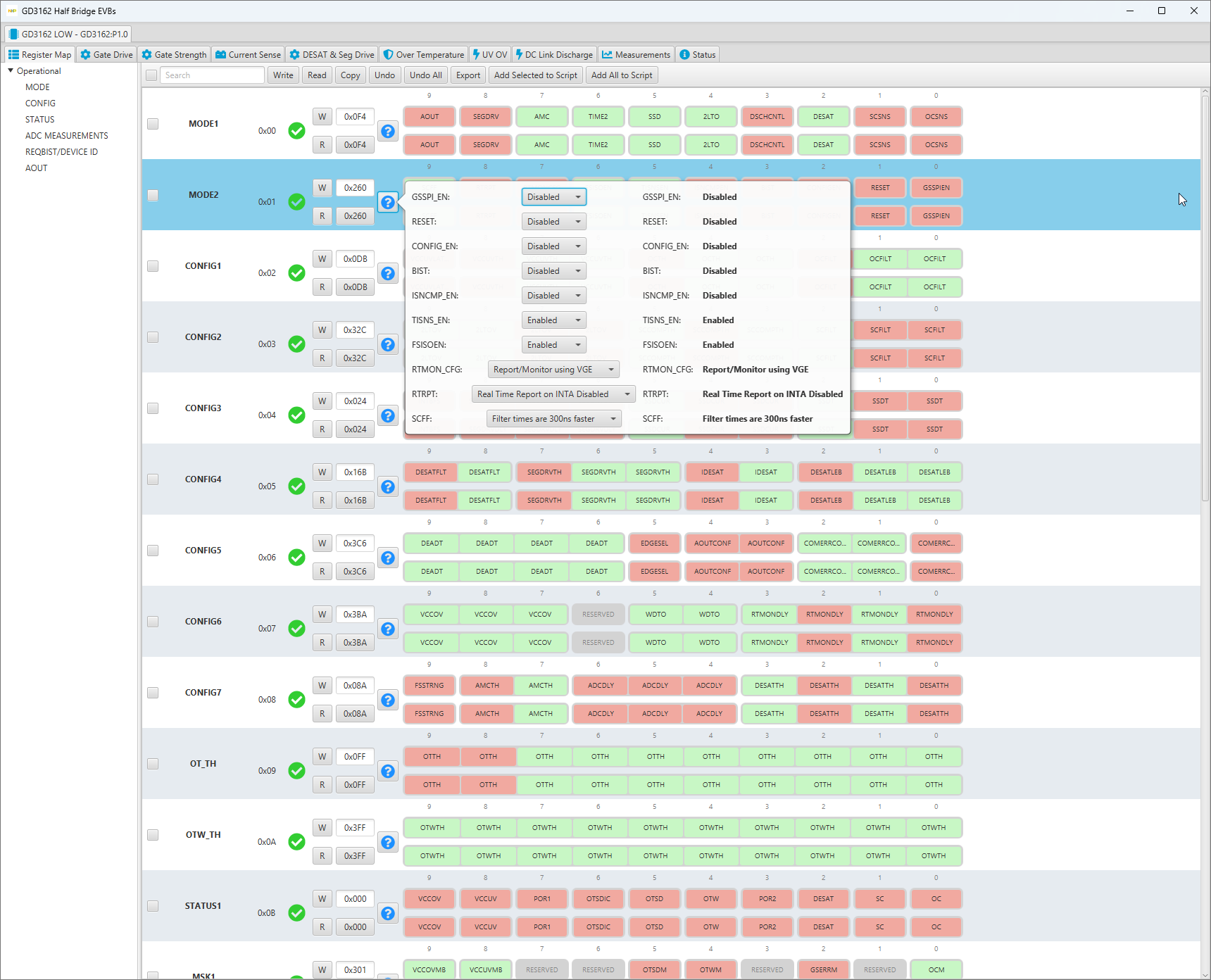 基于FlexGUI的应用支持几种不同的IC,可以在启动时通过应用启动器进行选择。每款精选的IC均提供寄存器映射视图(支持直接访问)、脚本环境以及用于功能模块配置和监控的组件。
