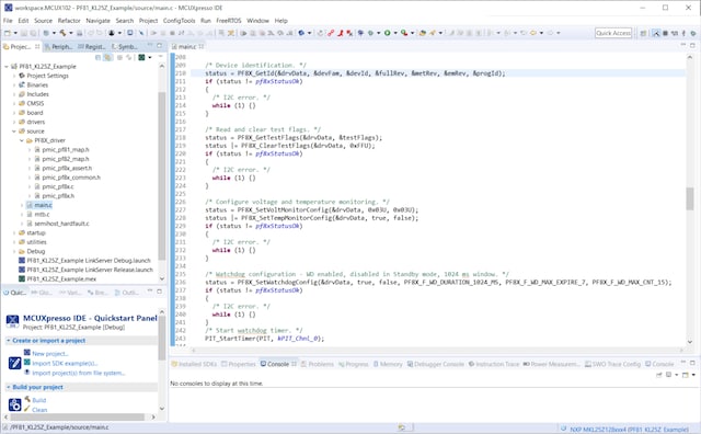 This embedded software solution provides high-level support for PF8x family PMICs. The driver implements basic functionality for PF8x interfacing such as I²C communication abstraction, watchdog settings and refresh, regulators and safety features configuration. The driver also provides complete register map.