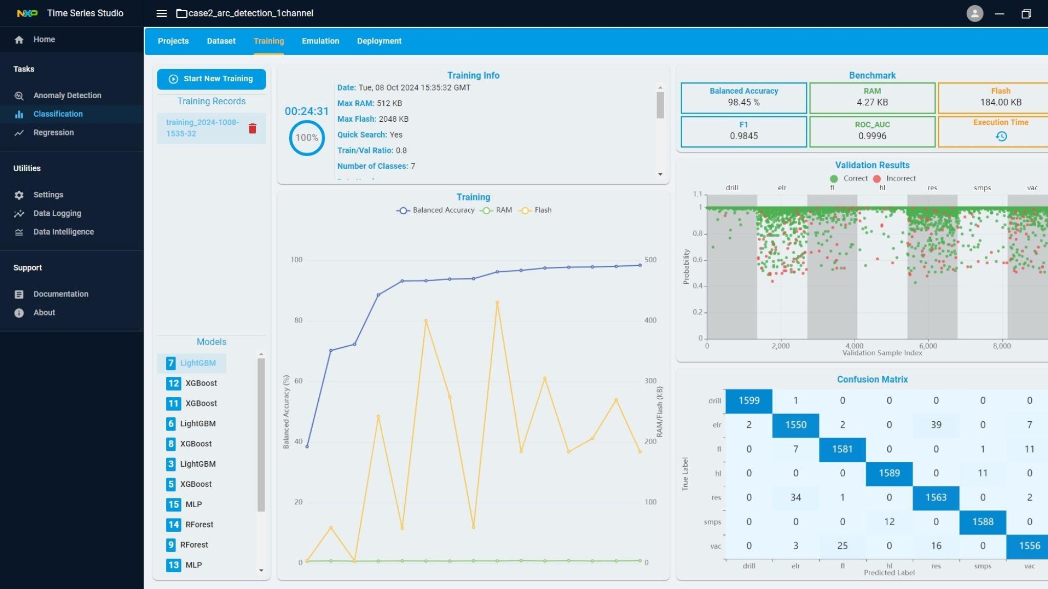 eIQ® Time Series Studio (TSS)是一款端到端开发工具,具备自动化机器学习(autoML)功能,可简化针对恩智浦处理器创建和优化时间序列AI模型的过程。TSS优化了包括数据整理、模型生成、优化、仿真和部署在内的工作流程。借助这种高效性,可将时间序列AI快速、无缝地集成到嵌入式系统中,实现预测性洞察。访问eIQ Time Series Studio 。
