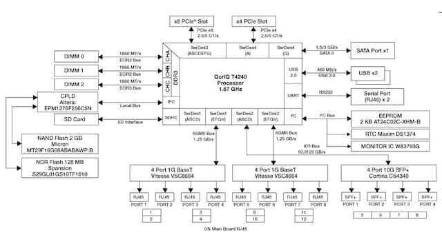 The QorIQ® T4240 reference design board (T4240-RDB) is a compact (1U), highly integrated board featuring the 24-virtual-core T4240 device.