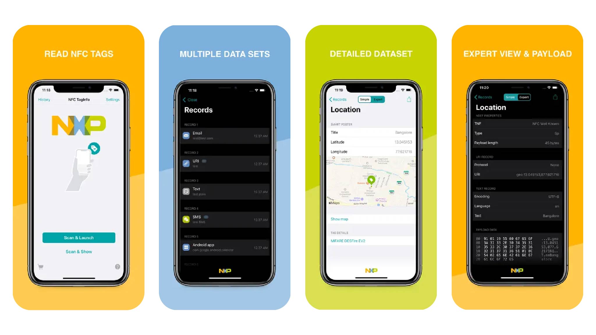 请注意,由于此类应用内置的安全机制,我们的应用无法访问实际存储的数据。在以消费者为重点的功能基础之上,它让非接触卡、标签和NFC支持的项目挖掘全面且详细、可公开获取的信息。其支持范围不仅限于恩智浦半导体的产品,更覆盖全球范围内广泛部署的、采用NFC及兼容免接触式技术的绝大多数产品与系统。全面的覆盖范围和易用性使NFC设备成为功能强大的手持分析仪,既能帮助业余爱好者探索支持NFC和兼容设备的功能,也能帮助专业人士识别配置问题和数据格式化错误。