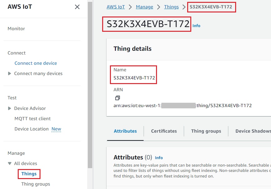 客户端设备的证书——在AWS IoT Console中创建“事物”的过程中生成。