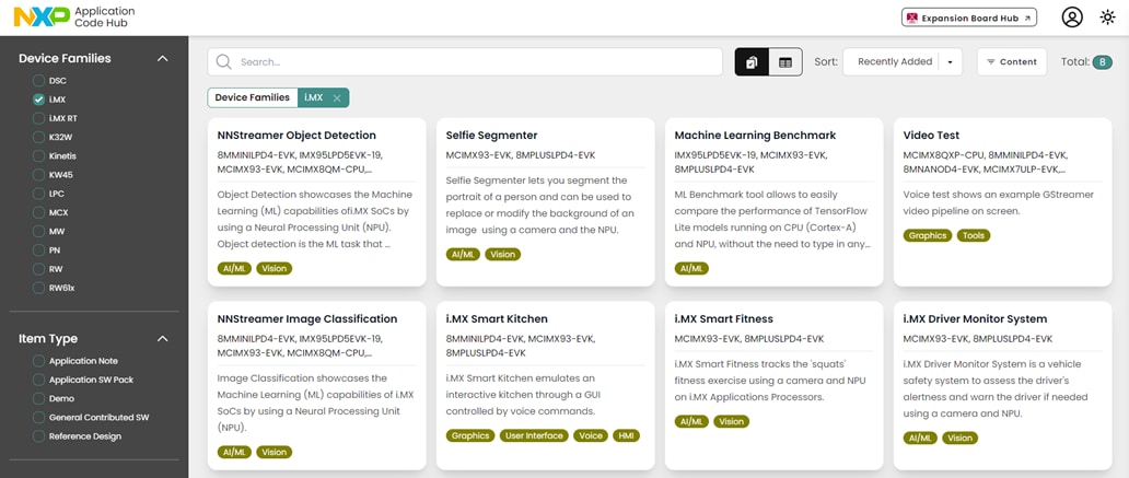 要查找FRDM-IMX8MPLUS的可用示例应用,请在“器件系列”中选择 “i.MX”,如下所示。