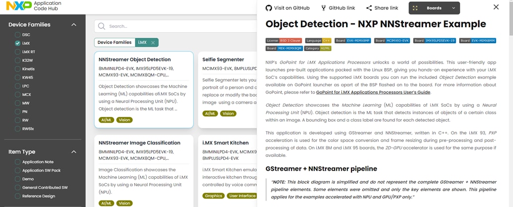 要获取每个示例应用的源代码,请点击顶部的“访问GitHub”按钮,访问恩智浦GitHub中的代码库。