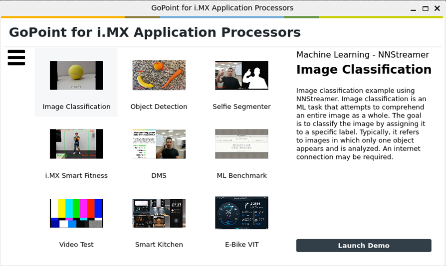 面向i.MX应用处理器的GoPoint是一款用户友好型应用,可启动Linux BSP预构建的应用,为用户提供卓越的开箱即用体验,并可亲身体验i.MX SoC的功能。GoPoint不仅突出了高级功能,还提供了实用的实现解决方案,并在GitHub上提供了应用的源代码和构建配方。