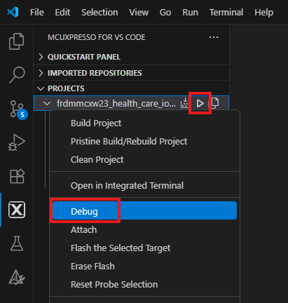 以下步骤将指导您使用Cortex-M33应用的MCUXpresso IDE来运行医疗物联网演示应用。MCUXpresso IDE安装和MCXW系列的SDK可以在本快速入门指南的“获取软件”部分找到。