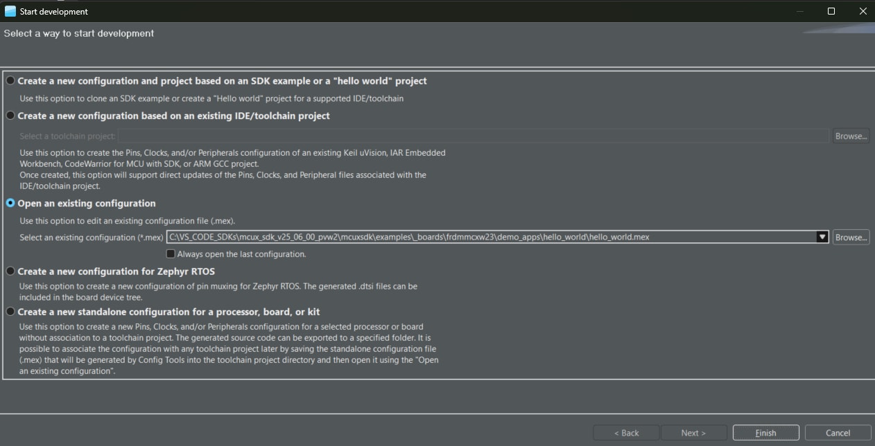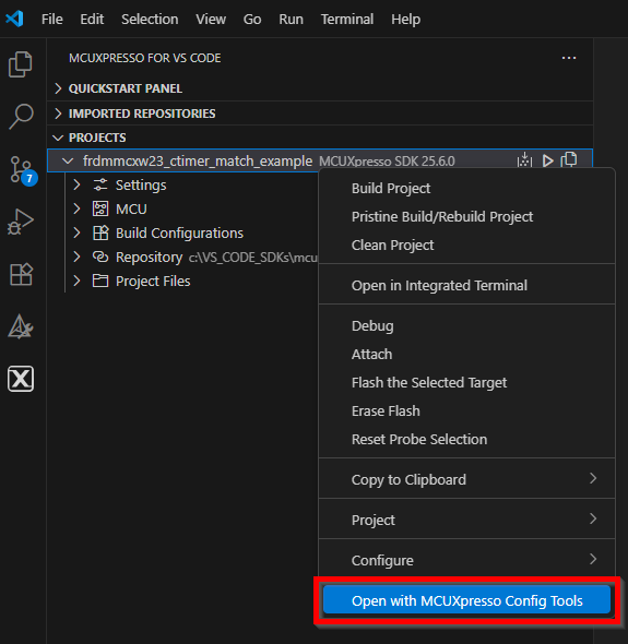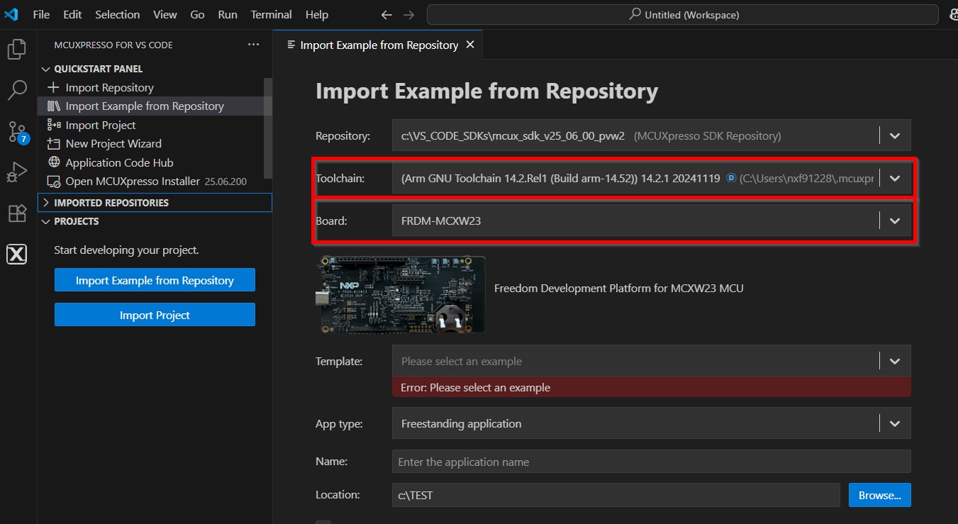本节将使用作为前提条件提供的SDK存档文件导入MCX W微控制器的MCUXpresso SDK。