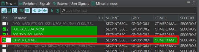 引脚工具现在应该显示CTimer项目的引脚配置。