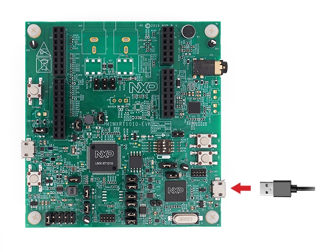 MIMXRT1010-EVK配有"led blinky"演示,使用板载LED。当该板通电后,绿色LED灯应闪烁。