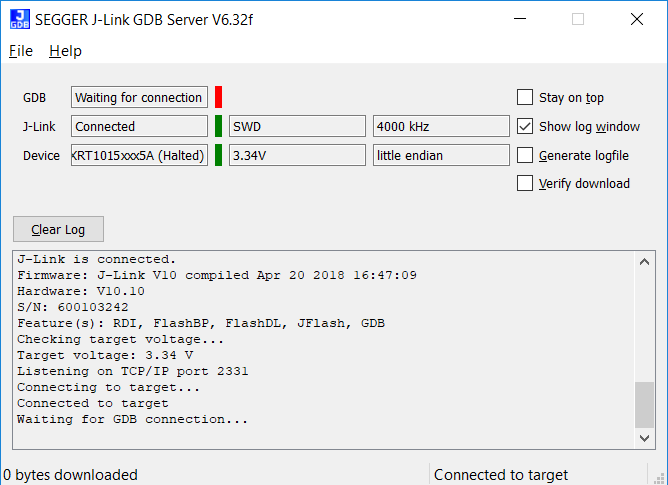 本节将介绍使用J-Link GDB Server应用运行演示应用的步骤。要执行本练习,请先完成以下两步:
