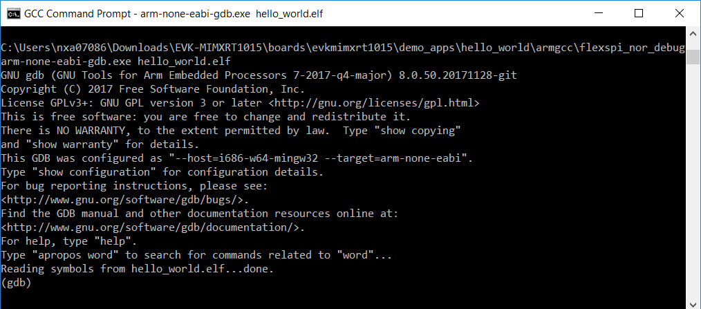 如果没有运行,则打开GCC ArmM嵌入式工具链窗口。要启动窗口,需从Windows操作系统Start菜单进入"Programs -> GNU Tools ARM Embedded