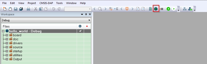 如需调试应用,请点击"Start/Stop Debug Session"按钮,用红色突出显示。
