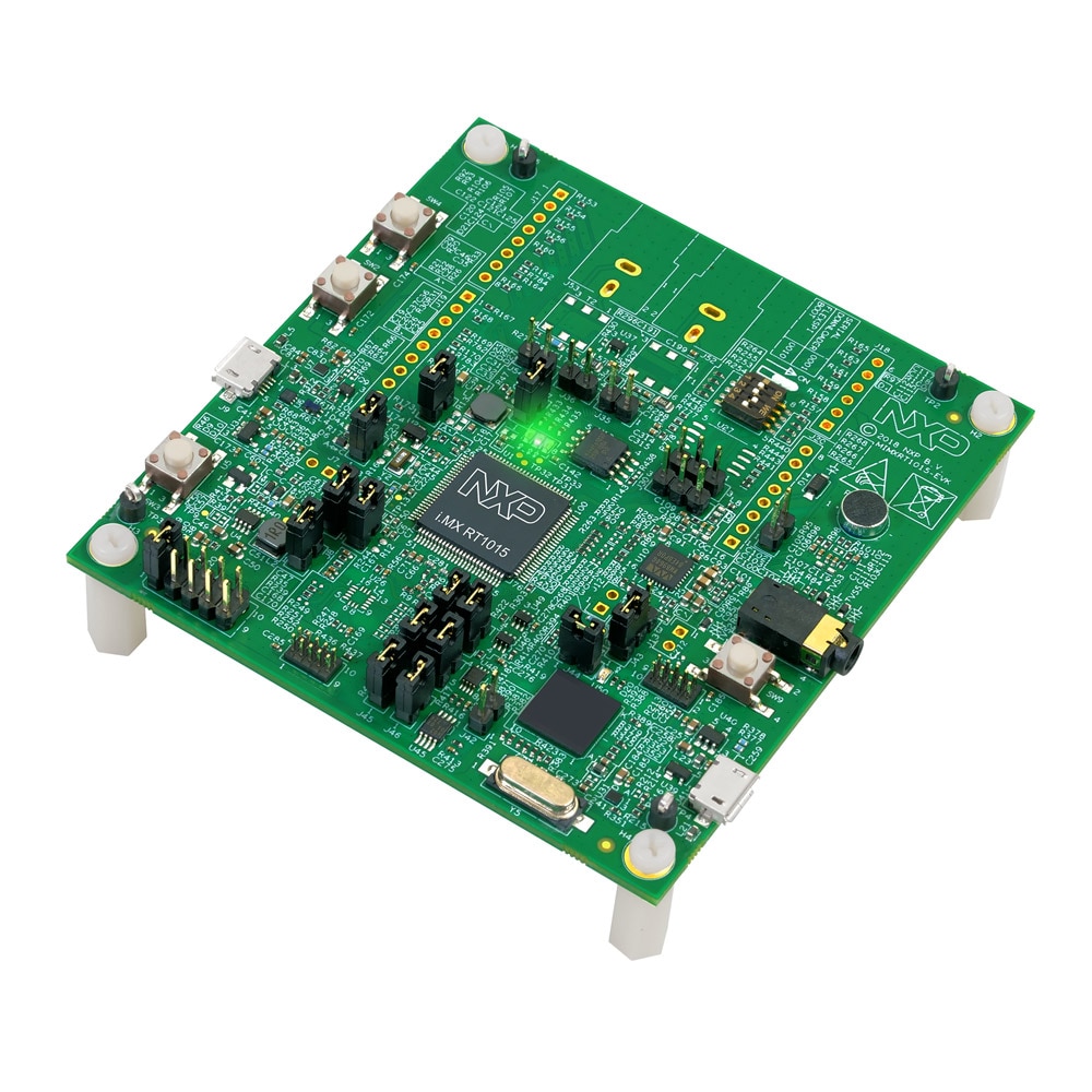 Your MIMXRT1015-EVK comes loaded with a "led blinky" demo that uses the onboard LED. When the board is powered, the Green LED should flash on and off.
