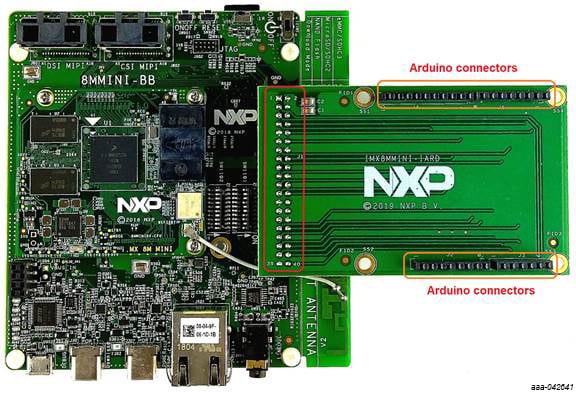 下图显示了如何使用IMX8MMINI-IARD内插板将Arduino兼容子板连接到i.MX 8M Mini LPDDR4 EVK。