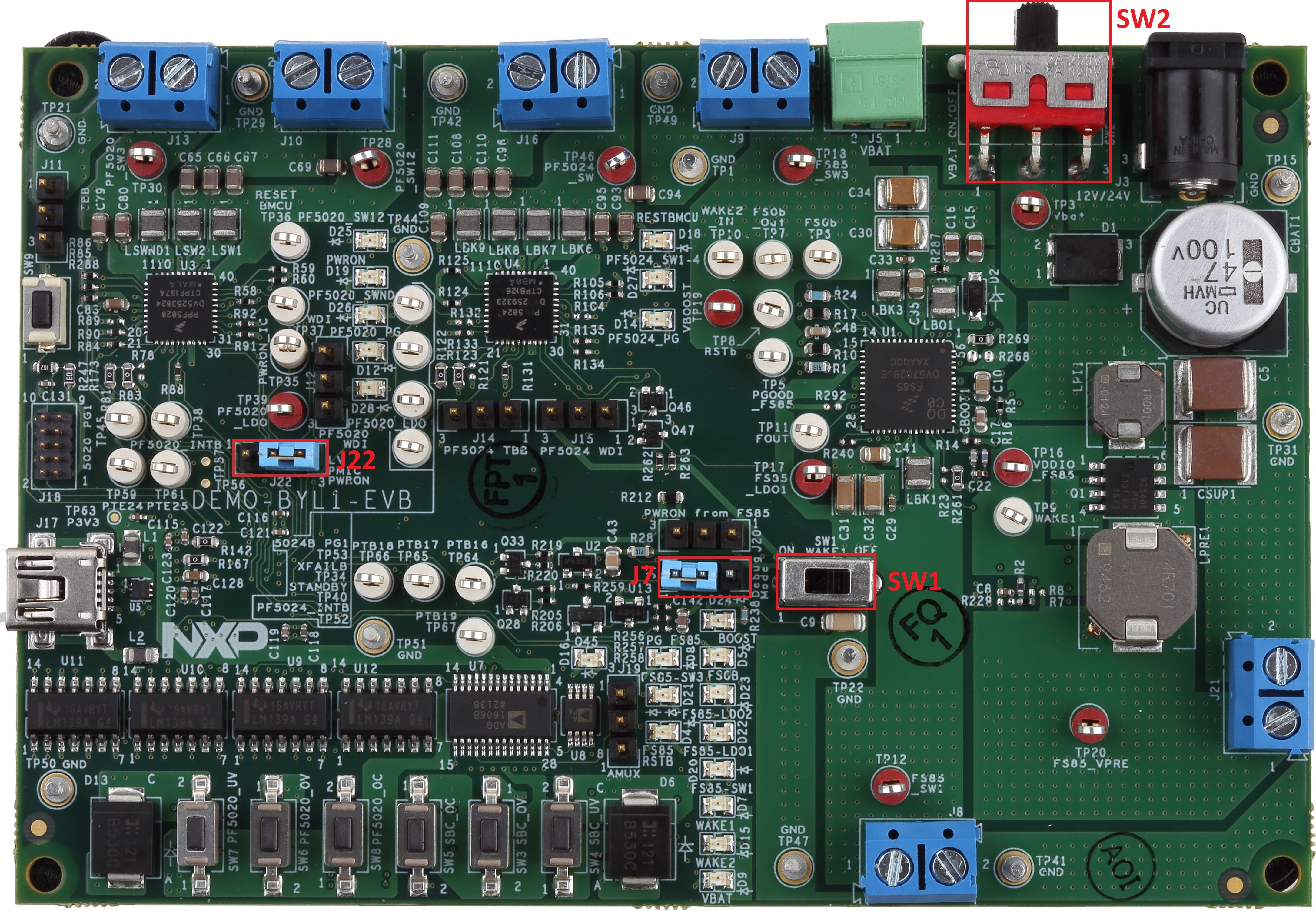J5 (VBAT和GND)。电源初始值应设置为12V,电流限值为2.0ASW1从中间位置切换到左侧位置1-2,连接VBAT到12V电源J3,将SW1从中间位置切换到右侧位置2-3Something went wrong! Please try again.