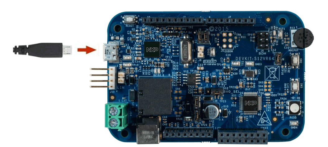 DEVKIT-S12VR64预装了简单的代码示例,可切换LED的颜色。