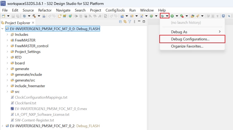 NXP\MC_DevKits\EV-INVERTERGEN3 要在S32 Design Studio IDE for S32 Platform中导入已安装的应用软件项目: