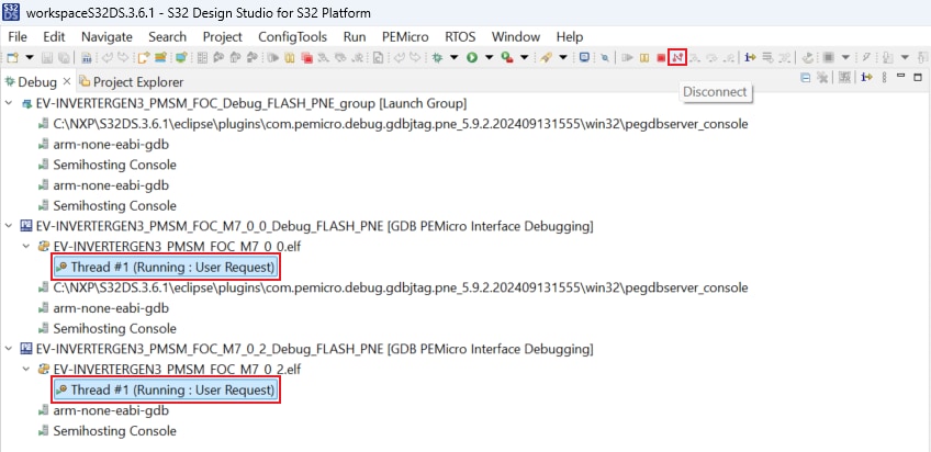 点击“断开连接”,避免S32DS IDE调试器和FreeMASTER工具之间的干扰。