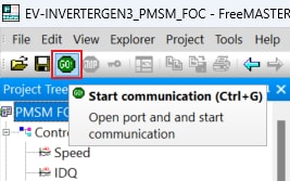 在FreeMASTER工具栏中,点击Go(或按下Ctrl+G),启用通信。