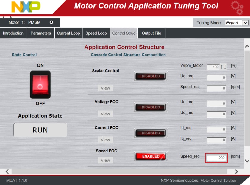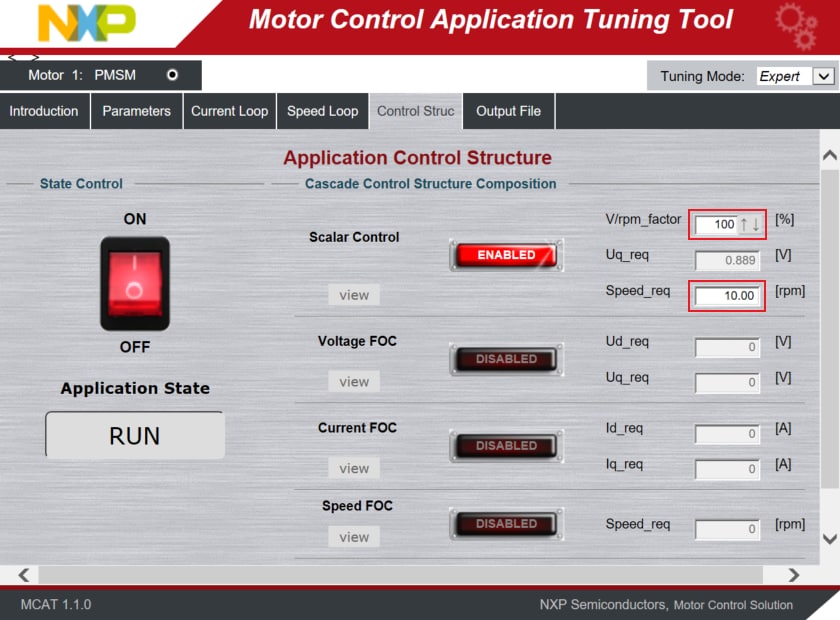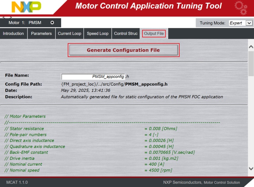 由于电机参数无法在运行时更新,因此请重复步骤4.3,构建项目并将代码上传至MCU。