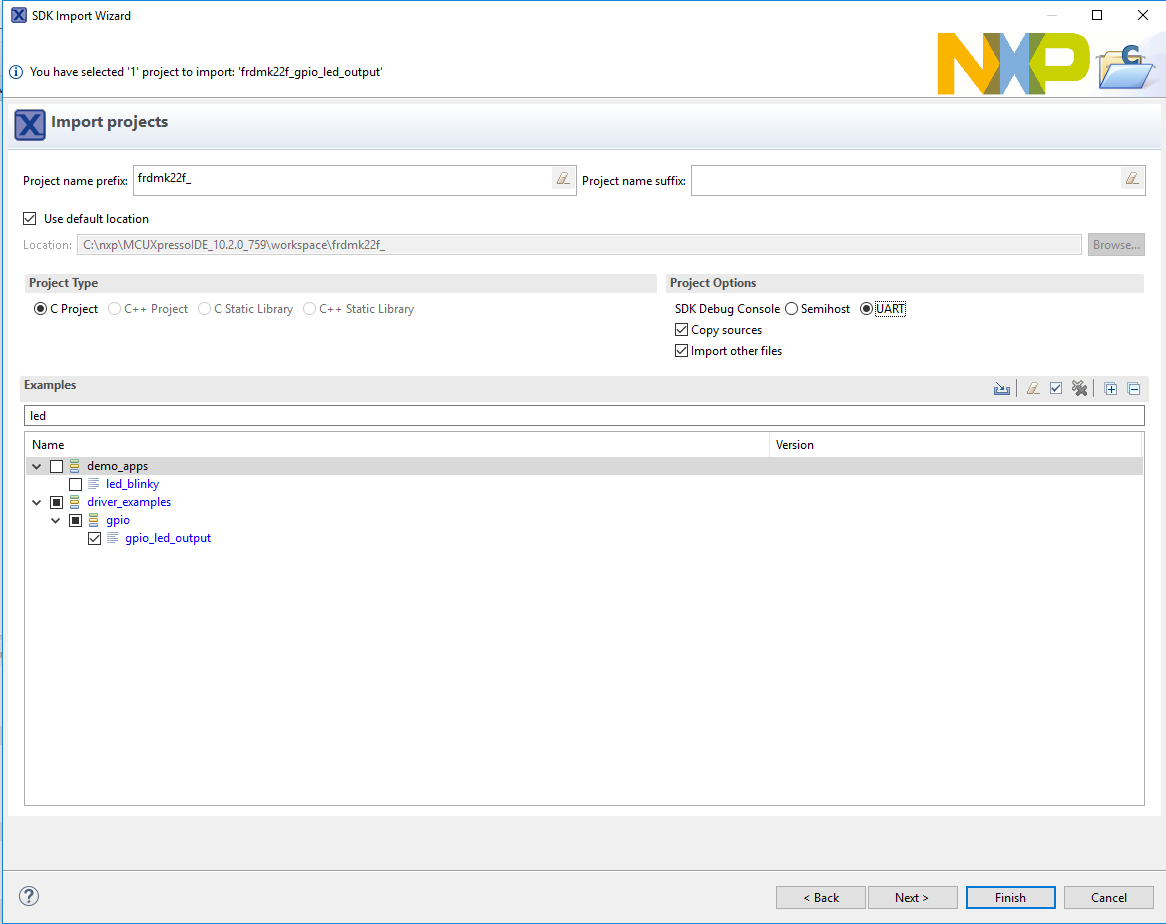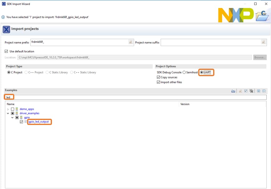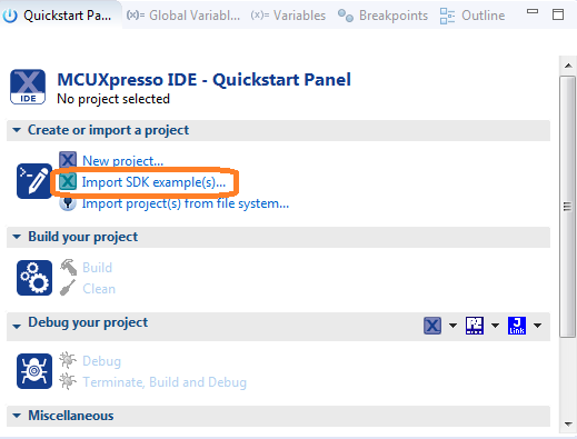 选项A:使用MCUXpresso IDE来克隆示例项目。