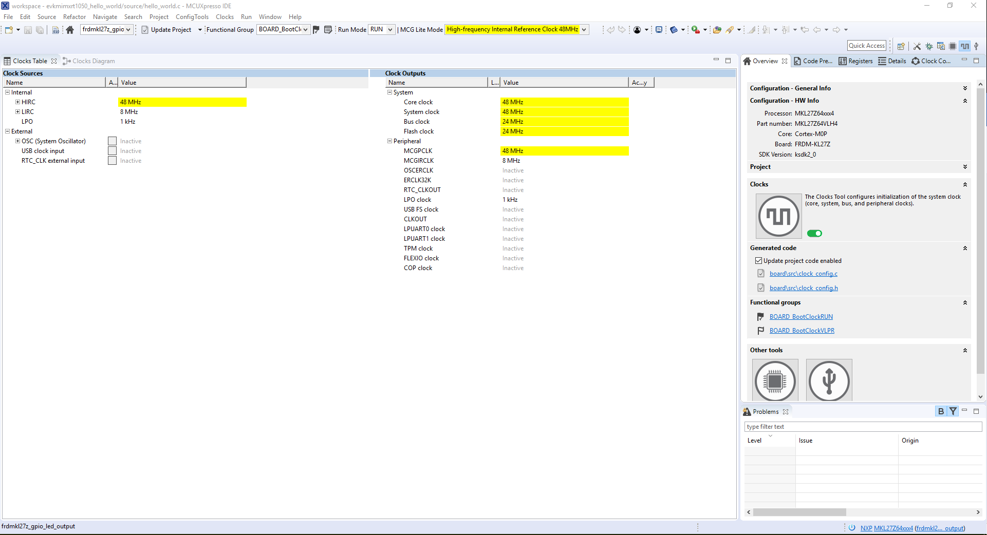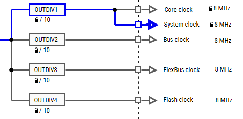 然后,使用MCUXpresso配置工具中的时钟工具来更改时钟设置并更改LED闪烁的速率。