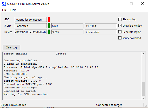 GCC工具需要J-Link调试接口。要将板上的OpenSDA固件更新为最新的J-Link应用,请访问OpenSDA。安装J-Link OpenSDA应用后,从Segger Downloads 下载J-Link驱动程序和软件包。