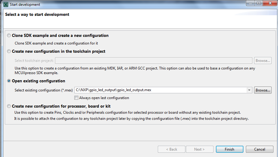 选项B:使用MCUXpresso配置工具来克隆与第三方IDE搭配使用的现有MCUXpresso SDK示例。