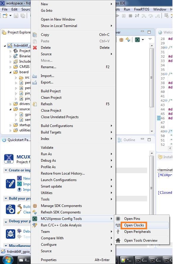 MCUXpresso配置工具是一套集成的配置工具,可指导用户创建新的MCUXpresso SDK项目,还提供引脚和时钟工具,以生成支持定制板的初始化C代码。