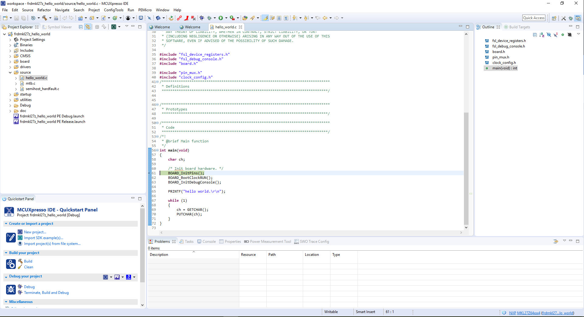 采用以下指南,了解如何使用MCUXpresso IDE打开、构建和调试示例应用。