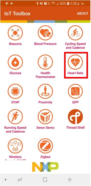 打开手机中的恩智浦物联网工具箱应用,并选择Heart Rate (心率)。