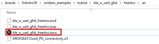 浏览至混合BLE Generic FSK广播演示(ble_w_uart_gfskble) IAR工作区,位于下一个路径:“