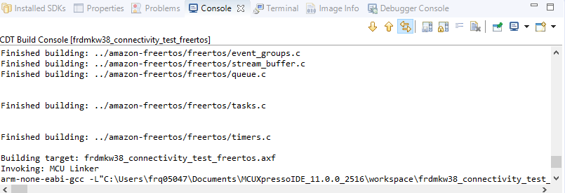 在MCUXpresso IDE中加载并构建演示应用。