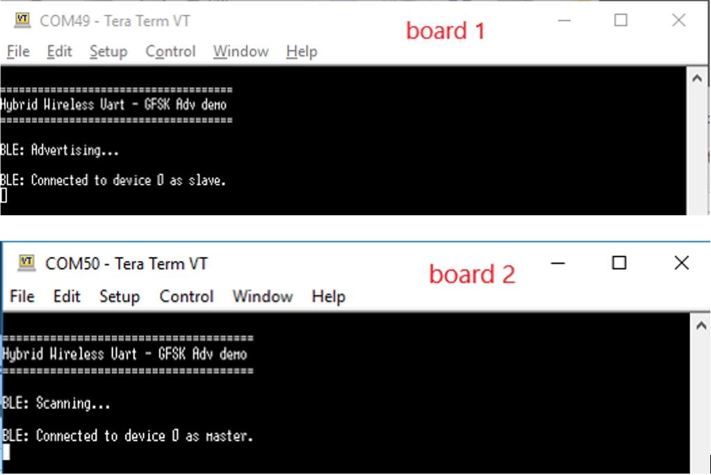 KW38无线连接软件包附带一个混合演示应用(Gen FSK + BLE)。如需查看提供哪些东西,请浏览'示例'文件夹 (\boards\frdmkw38\wireless_examples\hybrid)。